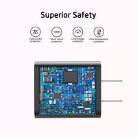 This Wall Charger has a smart chip for superior safety to protect from: Over-current, short circuit, over voltage and over temperature of devices.
